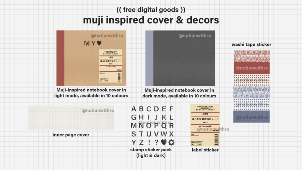 โข Light & Dark mode Muji-inspired notebook covers