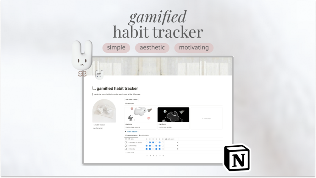 [Notion] Gamify Your Habit | Habit Tracker Template 🐰💻