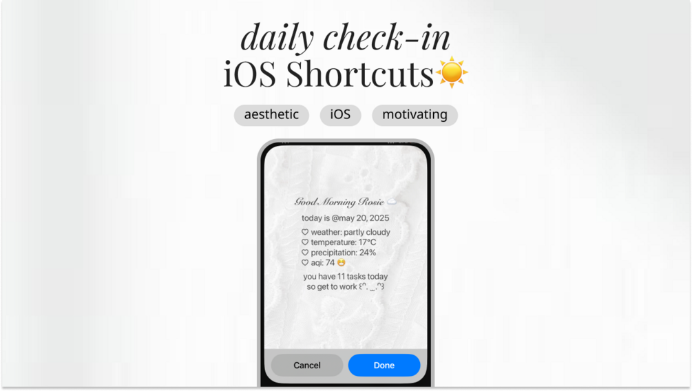 If your iPhone doubles as your alarm clock, consider this your sign to make your mornings a little softer and more intentional with a custom Daily Check-in Shortcut.